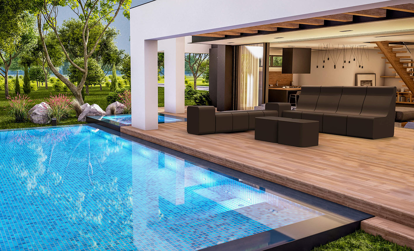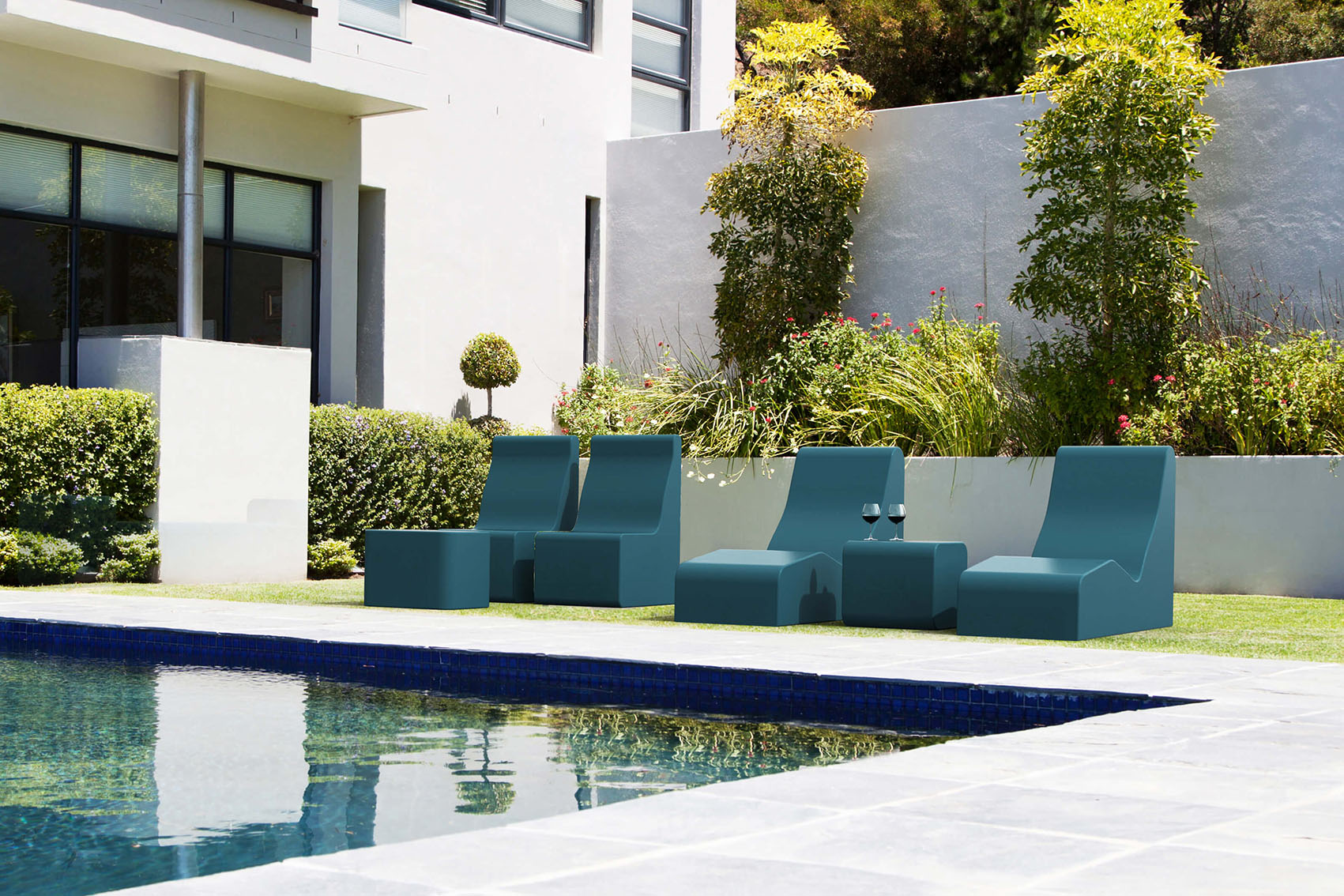 Spa-Loungemöbel sind eine Kollektion von Sitz- und Liegeelementen aus beschichtetem Weichschaum.
