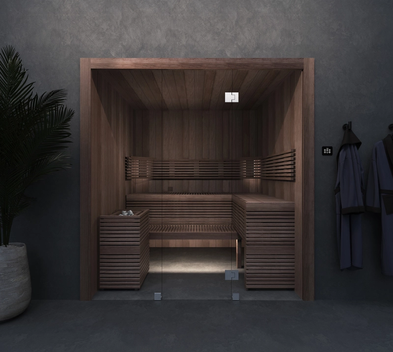 Keep in mind that the relay box and controls of the sauna and infrared cabin must always remain accessible. Place them in a technical room or, for example, behind a service hatch on top of the cabin.