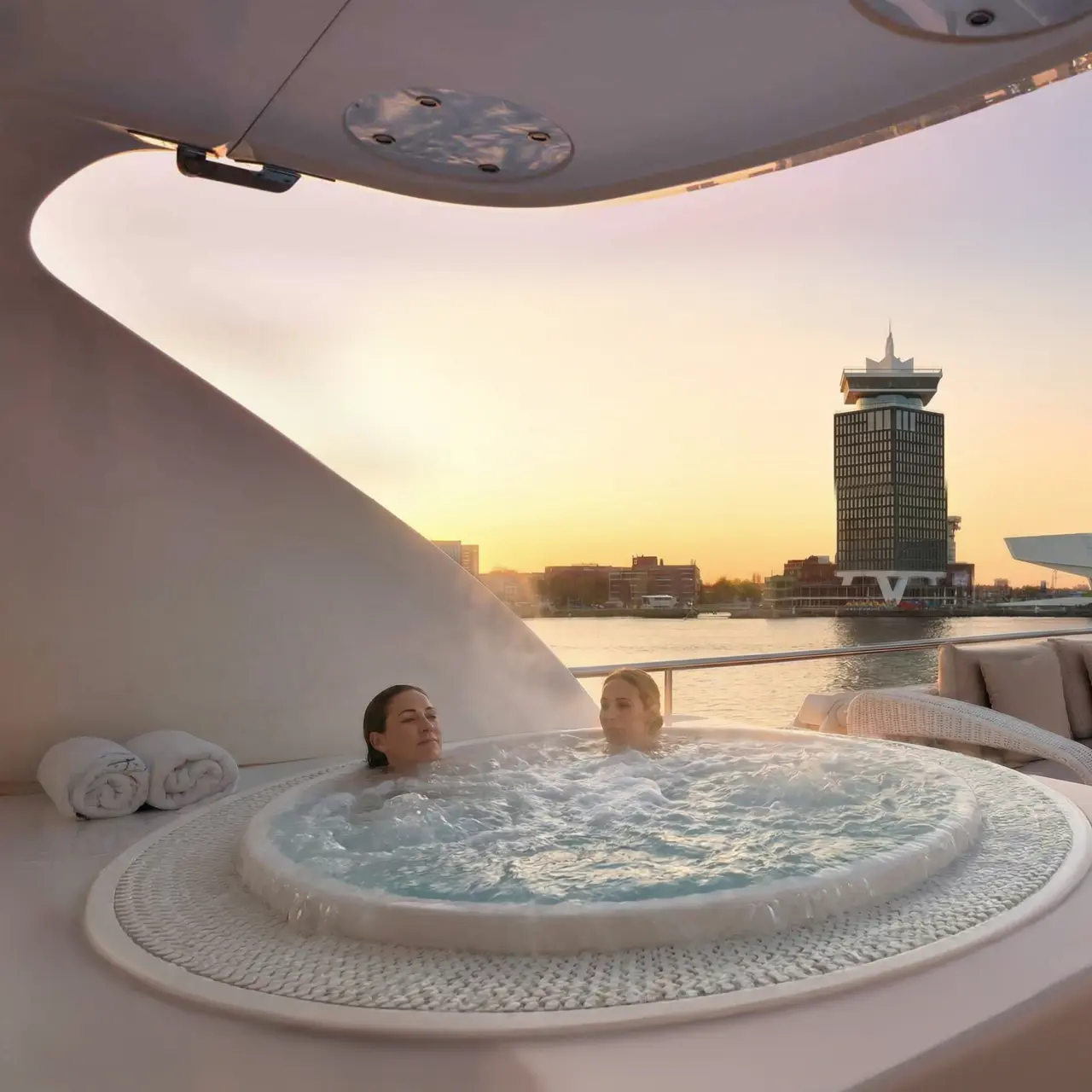 Het bad is uitgevoerd met een overloopgoot, waarbij het water continu en gelijkmatig over de badrand stroomt. Dit overloopsysteem zorgt niet alleen voor een strak en exclusief uiterlijk, maar draagt ook actief bij aan de hygiëne: vuil en onzuiverheden worden direct afgevoerd, waardoor het water en het bad langdurig schoon blijven.