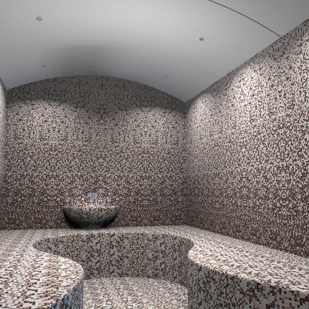 Een fraaie gevormde Hamam van alle gemakken voorzien. Banken, stoom, dakdouche en mooie LED verlichting.