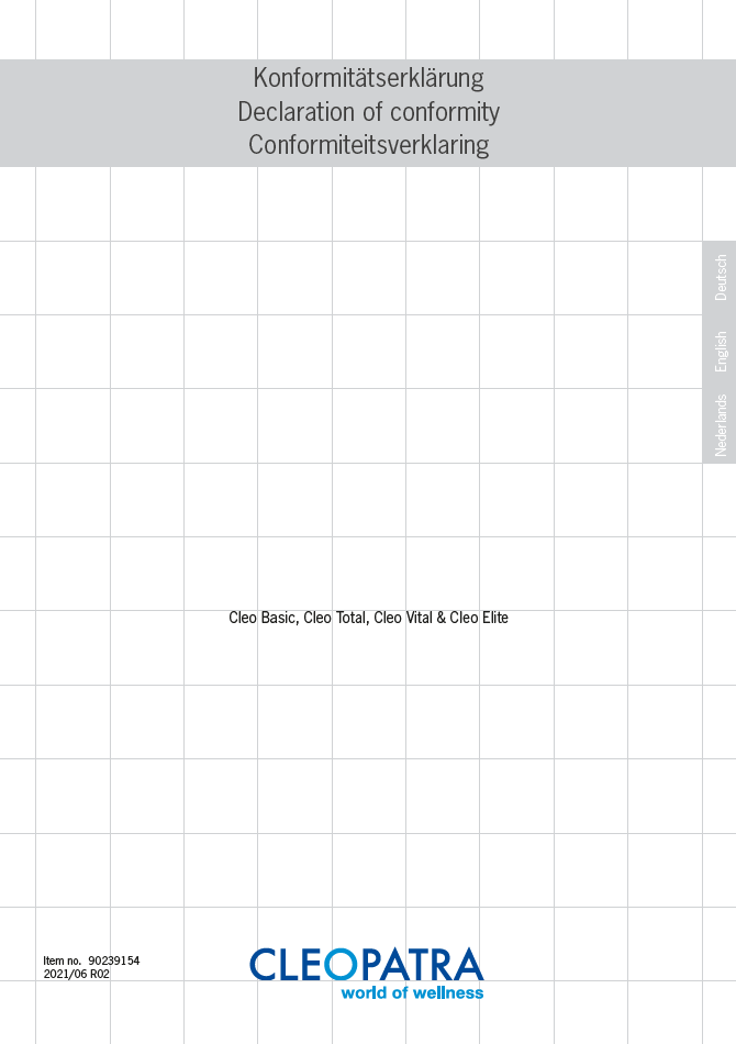 Conformiteitsverklaring Cleo Basic, Total, Vital & Elite | 90239154 | DE EN NL