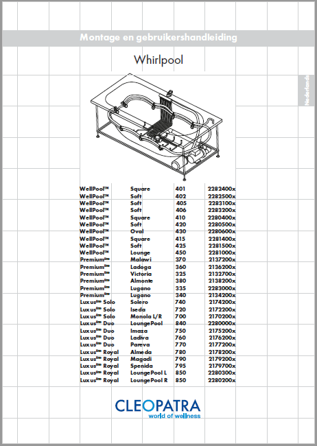 Cleopatra whirlpool handleiding | 90548872 | NL