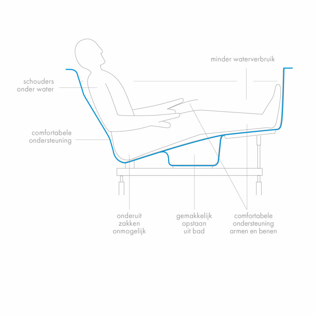 - Optioneel: kleurverlichting, verwarming, badkrandkranen, kleurdelen in speciale kleuren.