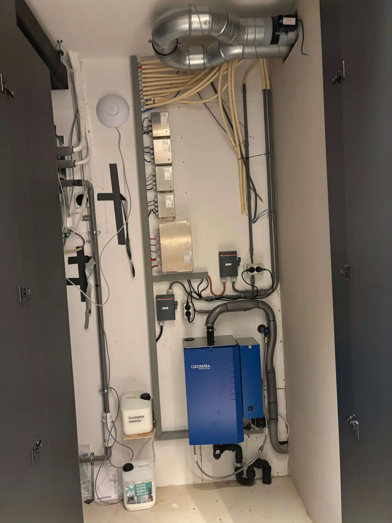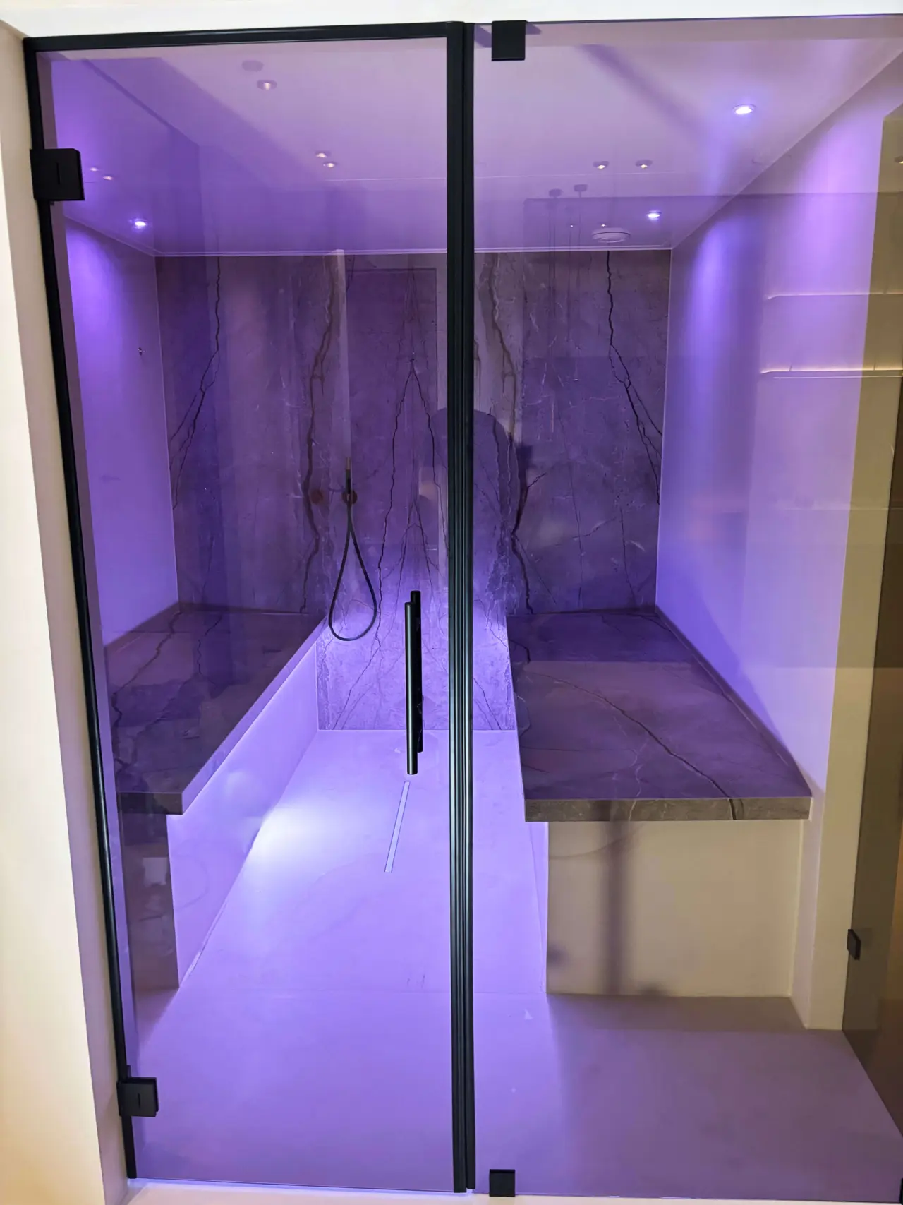 Deze luxe privé wellness is een oase van rust en verfijning, waar ontspanning en exclusiviteit centraal staan. De combinatie van een elegante sauna en een stijlvol stoombad creëert een complete wellnesservaring in de beslotenheid van uw eigen ruimte.