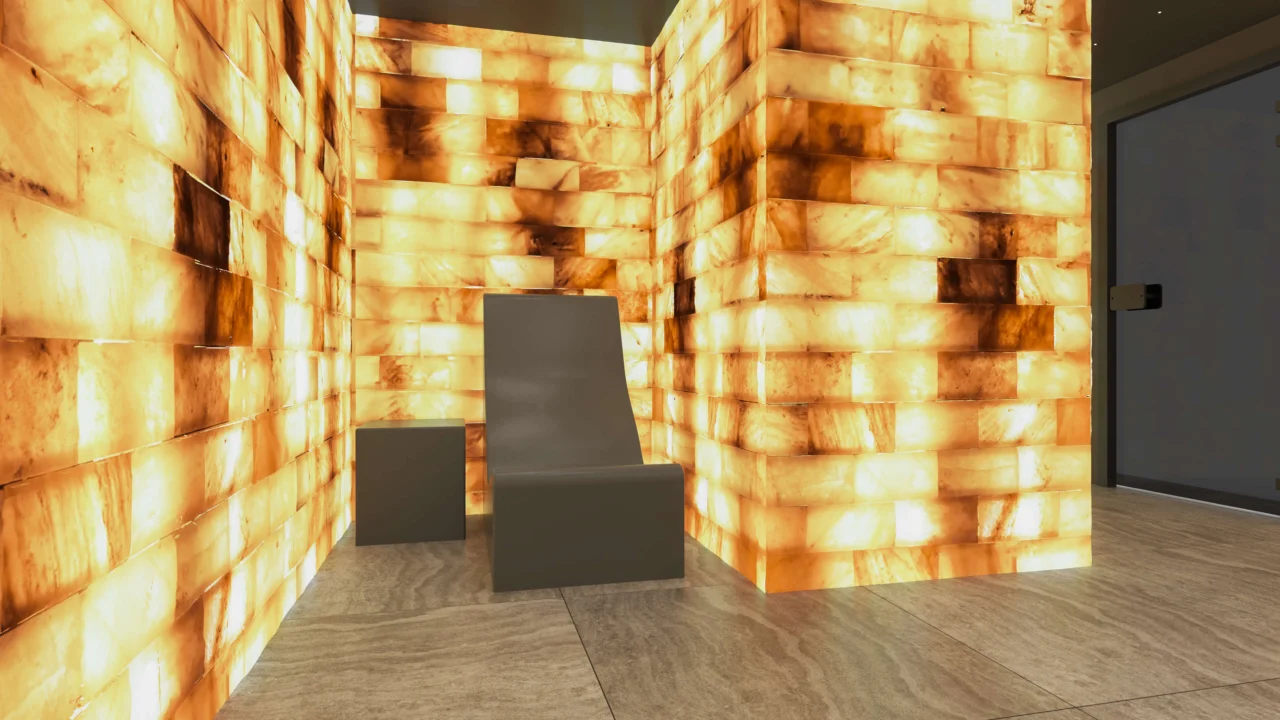 Deze kamer maakt gebruik van een machine die een halogenerator wordt genoemd. Een halogenerator is een machine die zout tot microscopisch kleine deeltjes maalt en deze in de lucht van een kamer afgeeft. Er wordt beweerd dat de zoutdeeltjes irriterende stoffen, waaronder allergenen en toxines, uit de luchtwegen absorberen, waardoor de algehele gezondheid van de longen wordt verbeterd.