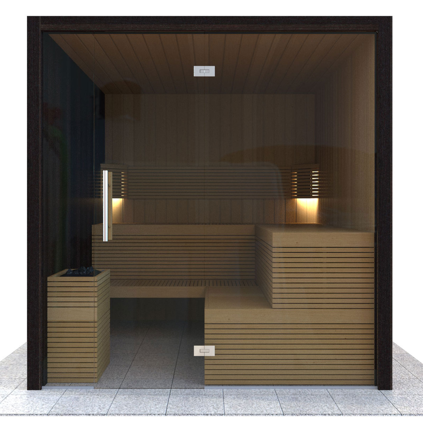 De Cleopatra sauna Tanami, in Caroline Pine-Espen design, is een lust voor het oog. Door het gebruik van veel glas aan de voorzijde wordt de sauna één met uw interieur. Verschillende details maken de Tanami sauna bijzonder elegant: de verfijnde roosters van Aspen van de banken, rugleuningen en saunakachelrek, het contrast tussen de linker zijwand van Caroline Pine en de rest van de binnenwanden van Aspen planken en de zachte hoekverlichting. De houtsoorten zijn voor deze saunalijn zeer zorgvuldig gekozen; de sauna wordt verwarmd door een Harvia Topclass saunakachel. Eenvoudig te bedienen en zeer betrouwbaar; zo kunt u jarenlang genieten van de sauna. De sauna is leverbaar in vijf standaardmaten. Maatwerk is ook mogelijk; neem contact met ons op voor meer informatie.