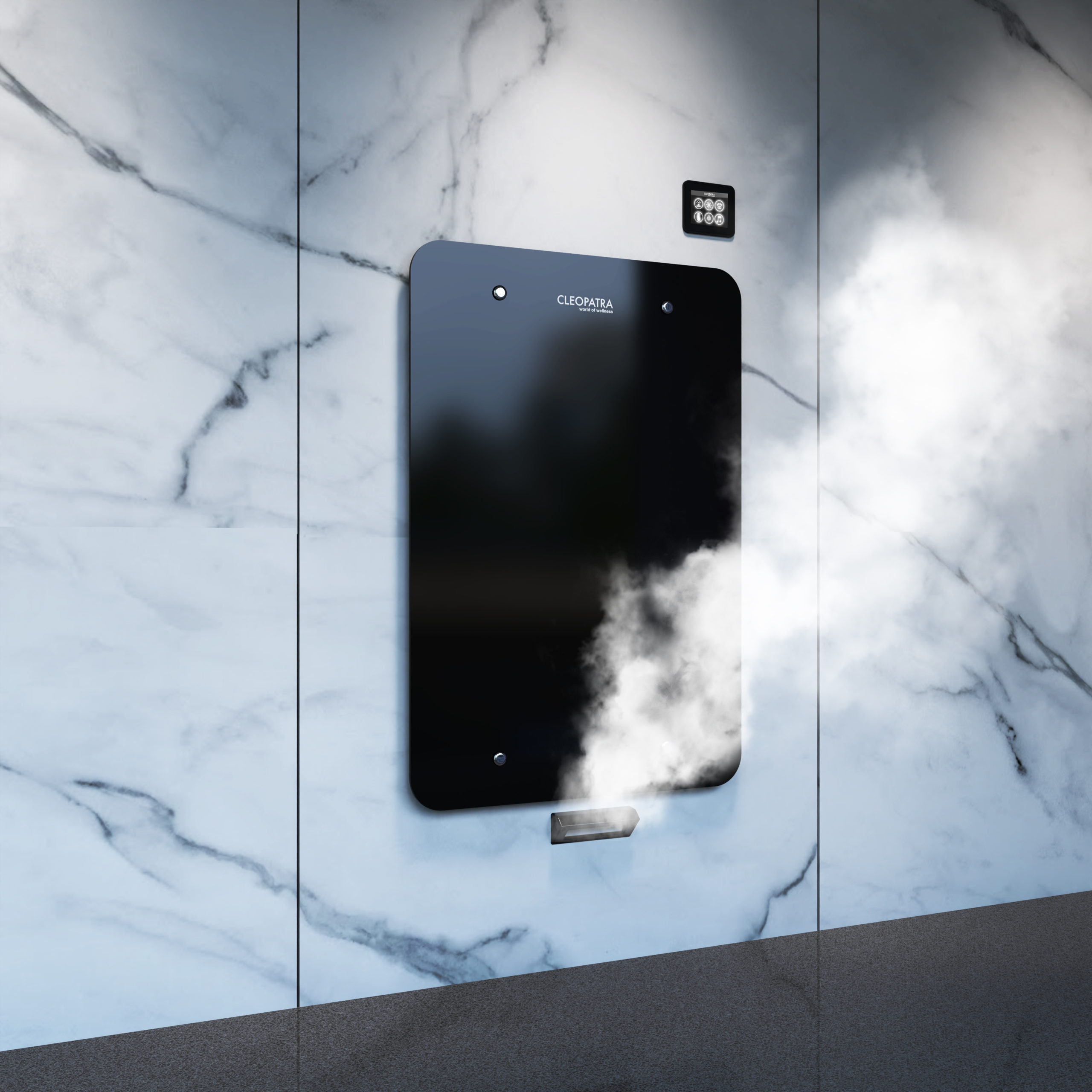 De Cleopatra BackWall Steam Deluxe is een installatie vriendelijk systeem waarmee op eenvoudige wijze een stoom of wellness generator binnen de stoomcabine gemonteerd kan worden.