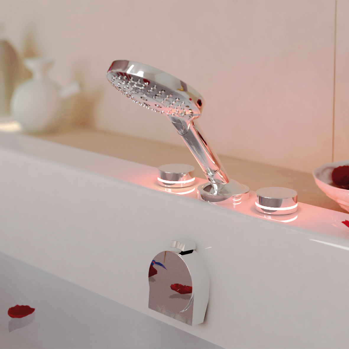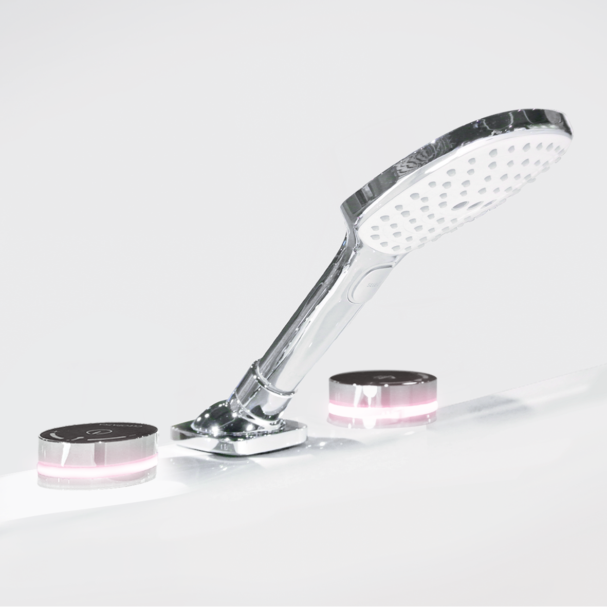 De kleuren LED op één van de twee bedieningsknoppen geeft de warmtetoevoer aan, met de andere knop bedient u de toevoerhoeveelheid en schakelt u om naar de handdouche. En, met één eenvoudige druk laat de kraan geen water meer door.