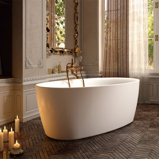 Het vrijstaand ligbad La Palma van Cleopatra is het prototype van een aangenaam, ruim en schitterend oval bad. De afgeronde dikke randen en de verfijnde gebogen lijnen geven La Palma een luxe uitstraling en zorgen voor een gevoel van ontspanning en zorgeloosheid.