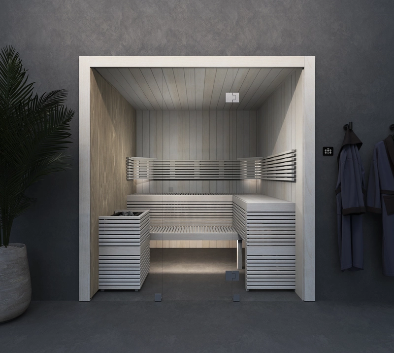 Hou er rekening mee dat de relaiskast en aansturing van de sauna en infraroodcabine altijd bereikbaar moeten blijven. Plaats deze in een technishe ruimte of bijvoorbeeld achter een serviceluik bovenop de cabine.