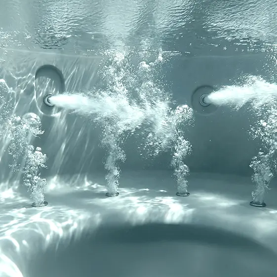 Het bad is uitgevoerd met een overloopgoot, waarbij het water continu gelijkmatig over de badrand stroomt. Dit overloopsysteem zorgt niet alleen voor een strak en luxe uiterlijk, maar draagt ook actief bij aan een schone en hygiënische waterkwaliteit: vuildeeltjes worden direct afgevoerd en het waterniveau blijft altijd perfect in balans.
