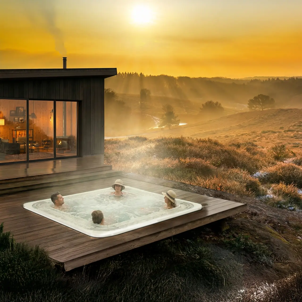 Dit royale vierkante bad van 227 cm is ontworpen voor pure ontspanning en biedt comfortabel plaats aan vier personen. Dankzij het strakke ontwerp en de hoogwaardige afwerking is het bad een stijlvolle blikvanger in iedere wellness ruimte.