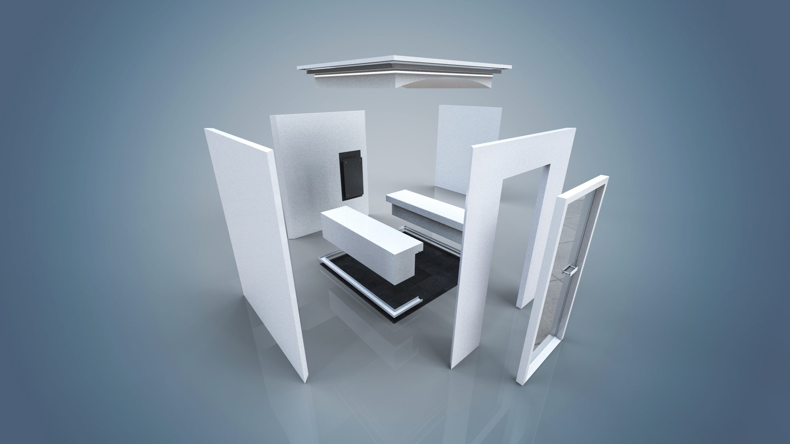 U kunt kiezen uit diverse wandafwerkingen: wit marmer, zwart marmer, betongrijs, mediterraan beige etc. De banken zijn leverbaar in diverse breedtes en ook met LED-verlichtingsstrip. Het dak kan plat, verlaagd of gebogen geleverd worden in diverse RAL-kleuren.